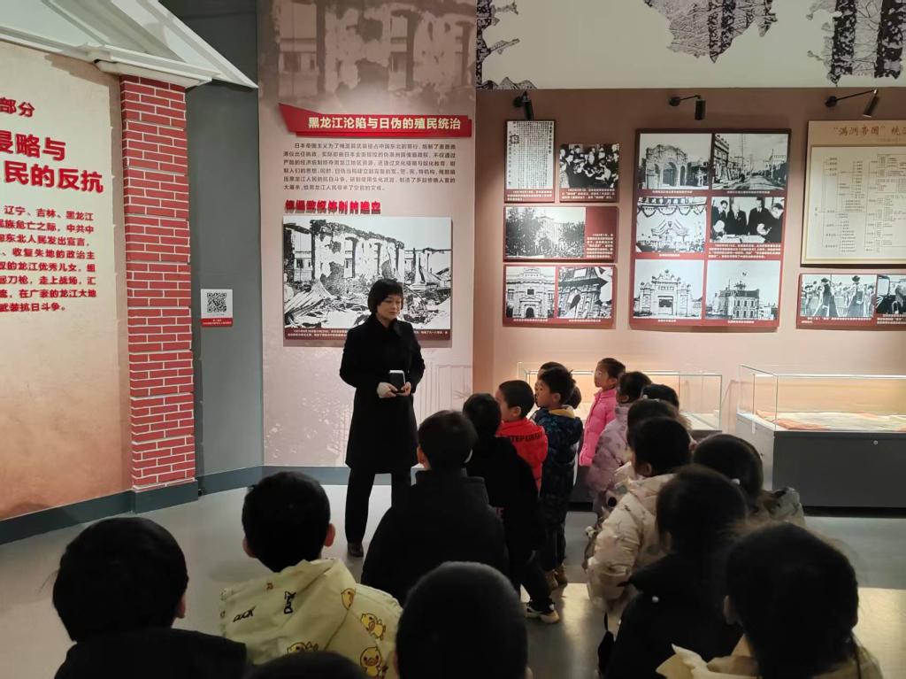 活动当天,全体人员怀着无比崇敬的心情,有序步入纪念馆展厅。在讲解员的生动讲述中,大家循着历史足迹,重温东北抗日战争与解放战争的峥嵘岁月。讲解员结合幼儿年龄特点,用浅显质朴、生动易懂的语言,讲述杨靖宇、赵一曼、赵尚志等革命先烈的英勇事迹。孩子们神情庄重、安静驻足、认真聆听,在一张张泛黄的历史照片、一件件承载记忆的革命文物、一幕幕还原历史的场景展陈前,真切感受革命先辈在艰苦卓绝的环境中坚守信仰、不畏强敌、浴血奋战、为国捐躯的崇高气节与伟大精神。