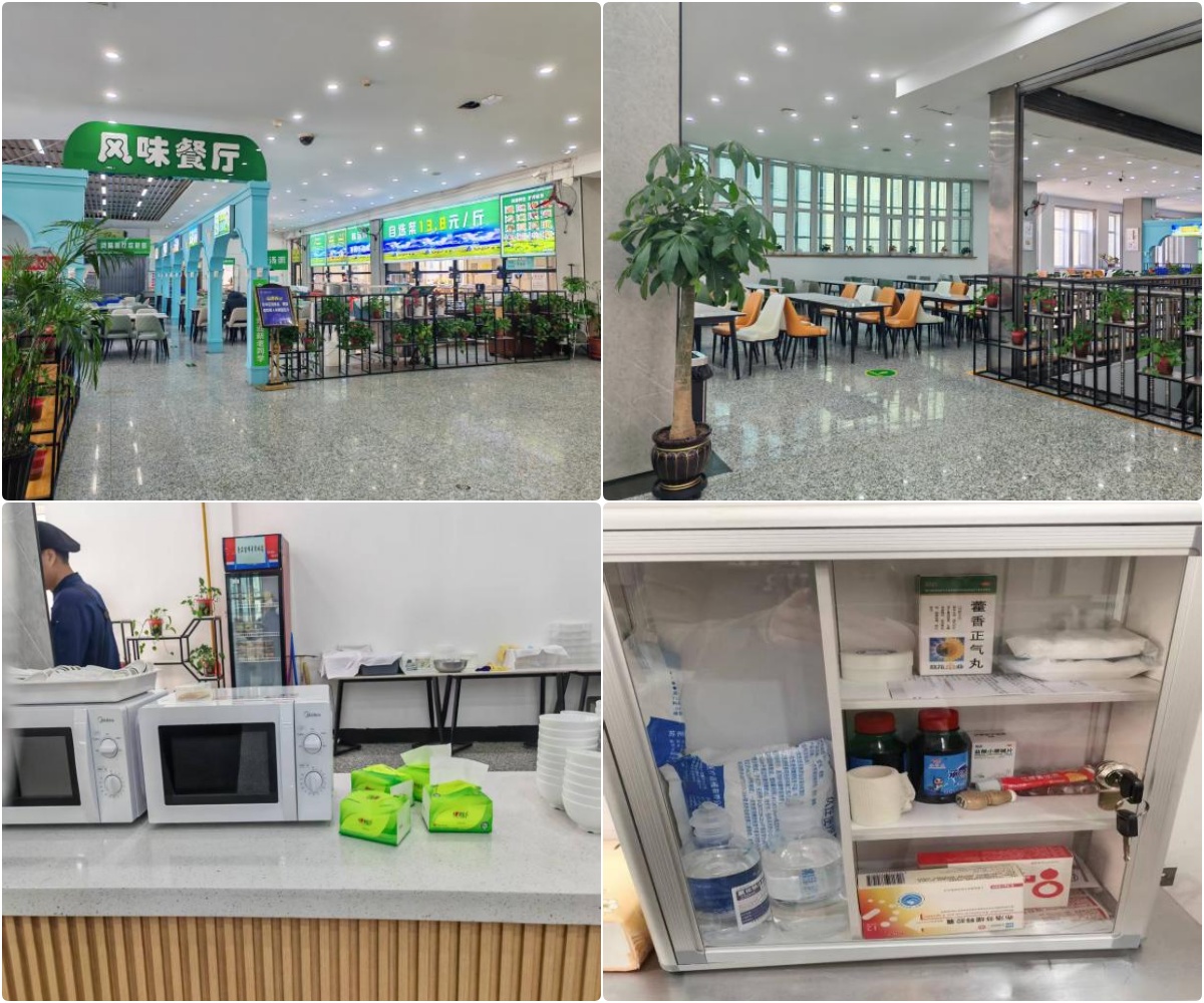 在严守食品安全底线的基础上,不断提升餐饮服务质量与保障水平。精心美化就餐环境,摆放绿植装点,打造整洁舒适、温馨雅致的用餐氛围;配备餐巾纸、便民药箱等暖心服务用品,以贴心细节提升师生就餐体验,让校园餐饮更有温度、更贴合需求。
