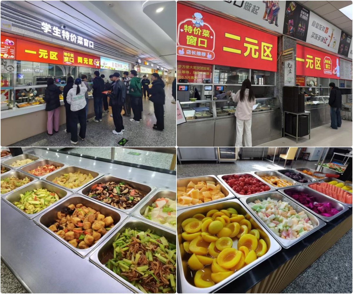 坚持校园餐饮公益属性,严格执行低价菜、中低档菜及标准餐供应相关要求,专门开设特价菜品窗口,推出一元素菜、两元荤菜等惠民菜品,特价菜品类达二十余种,切实让利于学生。同时严格规范菜品成本核算、价格备案与投料管理,保障菜品价格稳定、质价相符。在夯实基本供餐保障的同时,持续优化菜品结构,丰富特色菜品与健康类菜品供给,更好满足广大师生多样化、多层次的就餐需求。