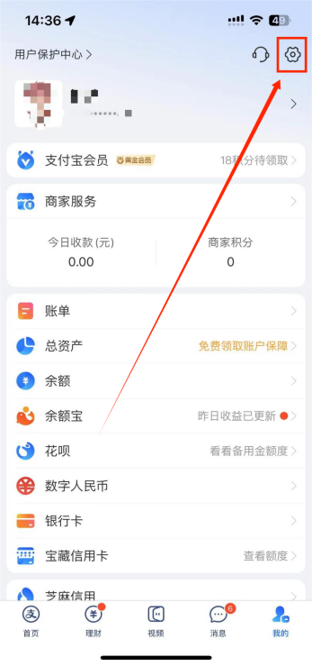 2.进入“我的”页面后,点击右上方齿轮状图标【设置】;