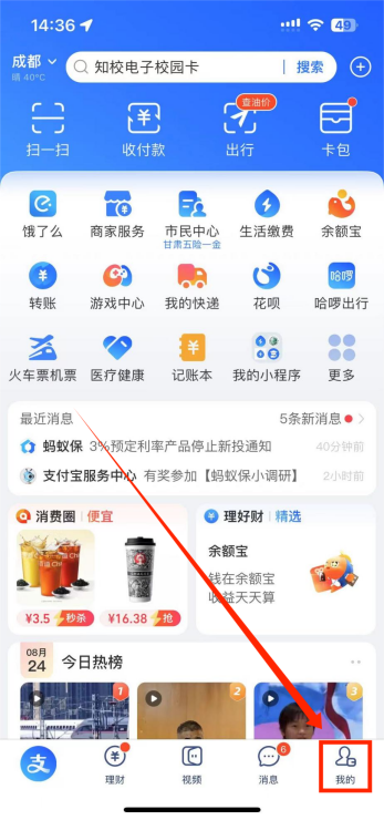 电子校园卡支付流程:师生领取电子校园卡后,即可在食堂使用消费设备就餐,消费时等待档口工作人员输入金额后,手机打开微信或者支付宝的付款二维码,将手机二维码页面对准设备取景框内,即可完成支付。