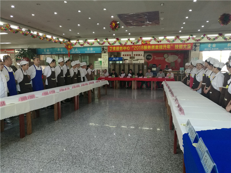 5月26日上午8:30分,饮食服务中心“2018服务质量提升年”技能大赛在格致园四楼举行。本次活动的成功举办,得到了主管校领导及后勤管理处领导的大力支持与帮助,也为贯彻落实高校后勤系统“四零”服务,提高我饮食服务中心烹饪技术技能,丰富校园餐桌品种,促进厨艺技能的互动交流,做好我校餐饮保障工作,展示我校伙食员工技能水平。创新比赛项目,,突出大众特色是本次活动的主题。