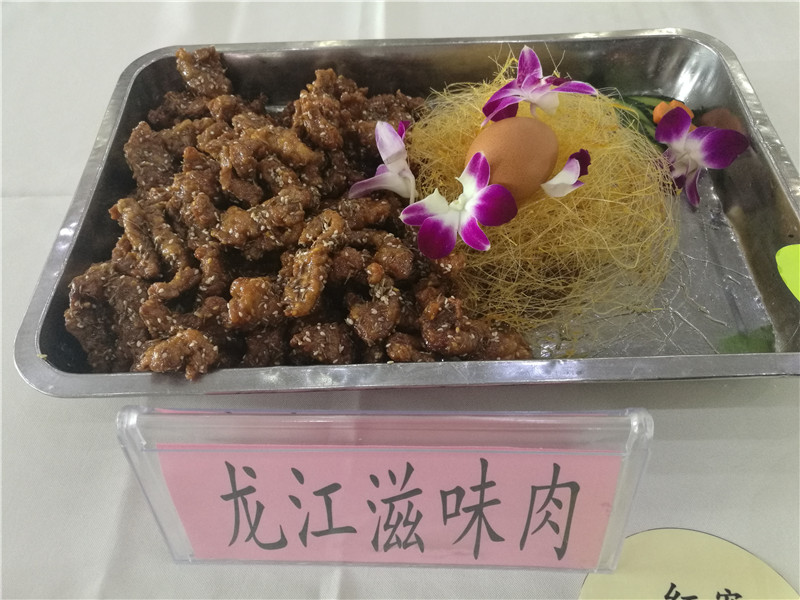 大赛认真履行公平、公正、公开的比赛原则,担任本次比赛的评委有省高校伙专会副主任、东北林业大学后勤服务总公司副总经理姚远、省高校伙专会副主任、哈尔滨商业大学后勤管理处副处长王云松、省高校伙专会副主任、黑龙江科技大学饮食中心主任朱国林、哈尔滨工业大学饮食中心副主任廉洪波、哈尔滨工程大学饮食中心主任李景刚、中快餐饮集团黑龙江中天餐饮有限公司技术总监洪靖、黑龙江大学饮食服务中心总厨师长牟家庆。大赛历时3个多小时,共制作红案作品48道,白案作品30道。朱国林主任、洪靖总监、牟家庆厨师长对本次大赛的红案作品、白案作品、必选菜品掐菜肉丝进行了逐一的点评。