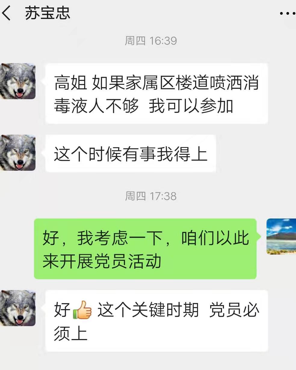 公共区域消毒,家属区垃圾清运,随时都面临着被感染的风险,但李国文同志还是勇敢地冲锋在前,时时督促检查,确保公共区域每日消毒两次,生活垃圾每日清理,全力为家属区营造一个安全、卫生、舒适的生活环境,彰显了共产党员的责任与担当。