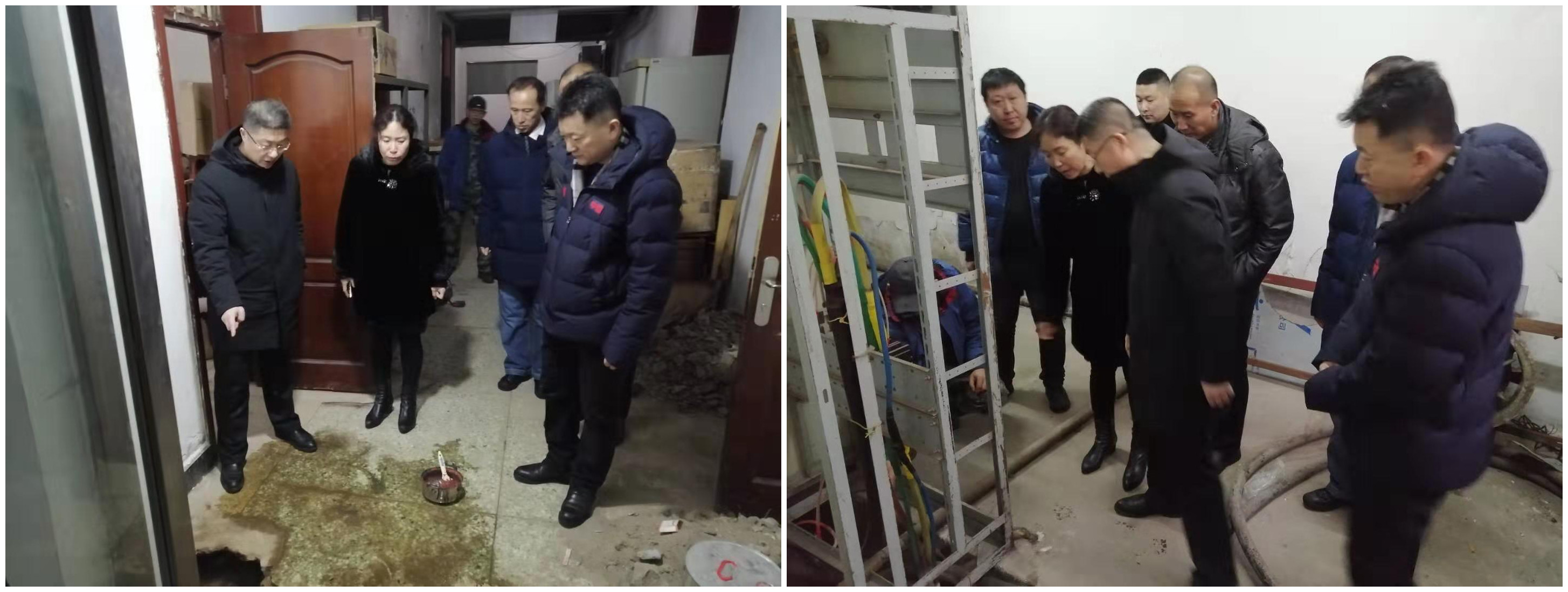 随后,陈校长与校区管理处郭处长一行人来到生命科学院地下室,查看漏水情况,针对不明来源的漏水问题陈校长指出,要找到漏水原因,从根源治理,同时也给出了一些维修意见。