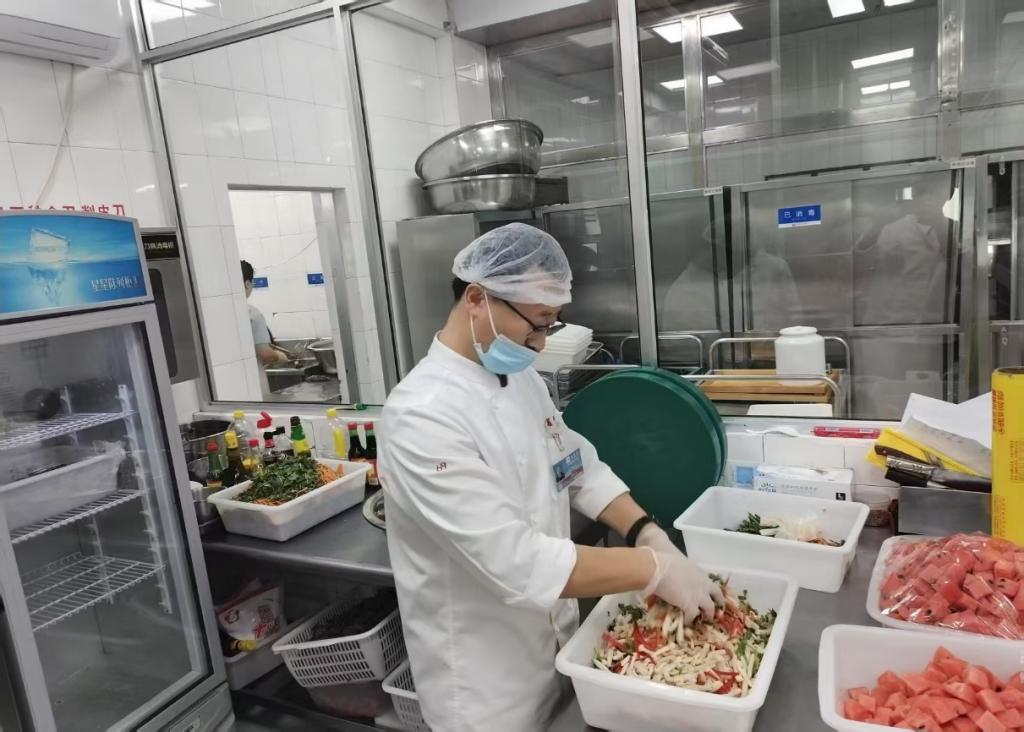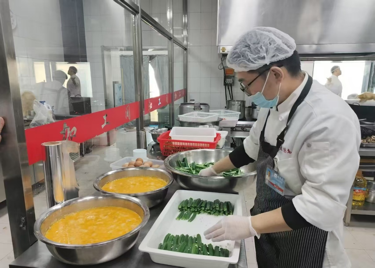 此次我校支援亚冬会保障供餐厨师团队包含凉菜师傅、热菜师傅、面点师傅,主要保障亚冬会工作人员及特勤人员的供餐工作,自1月14日到2月15日共计33天,食堂厨师团队一直奋战上后厨第一线,春节期间全员坚守岗位,全力以赴为亚冬会的成功举办筑牢根基。